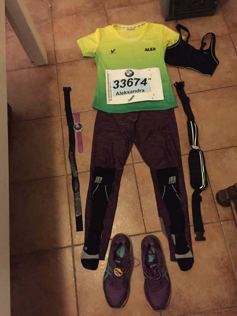 When we got back home, I prepared everything for the next day – clothes, race number, pins, gels, bag, attached timing chip to my shoe laces.
