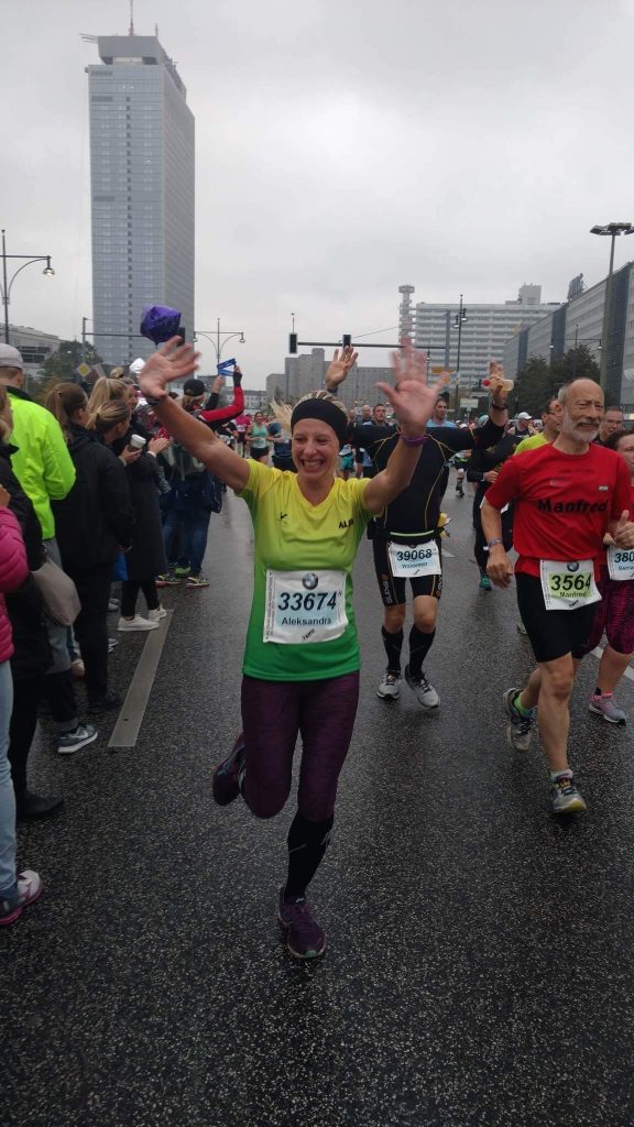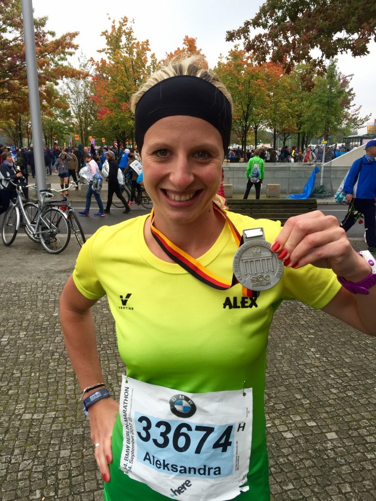 I don’t know what my face was saying but someone shouted: “Aleksandra just enjoy”. Going through the gate was amazing, it’s such an iconic Berlin landmark. I thought that was over but we still had around 500m to go. I decided to speed up and then I felt such a massive pain in my quads. I’m sure another 1k and I would have a cramp that would not let me continue…