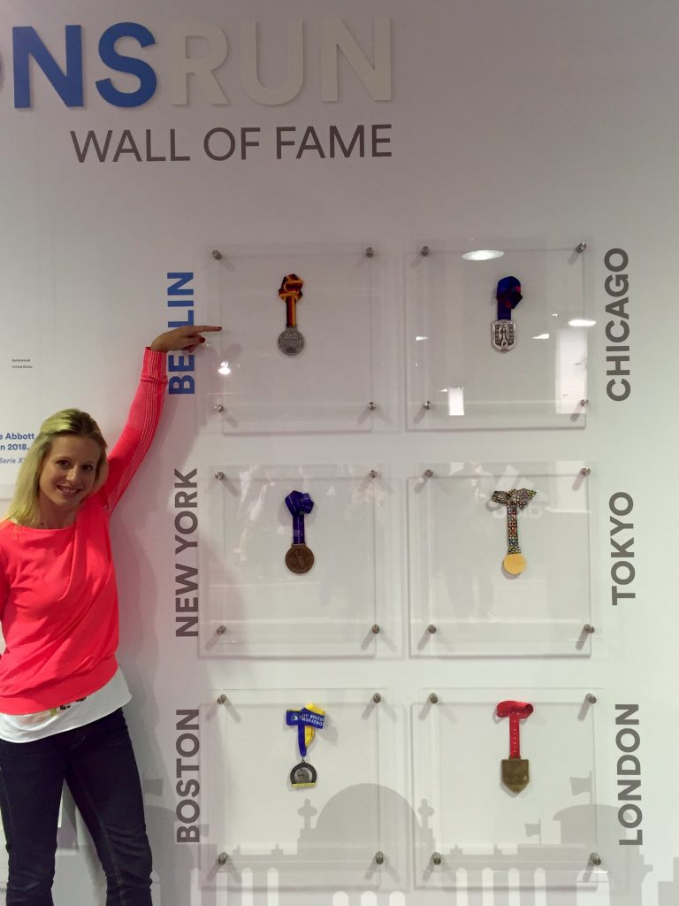 After taking some pictures, wimbling around all sorts of stands, we stopped at Abbott display, looking at all 6 World Marathon Majors medals.
